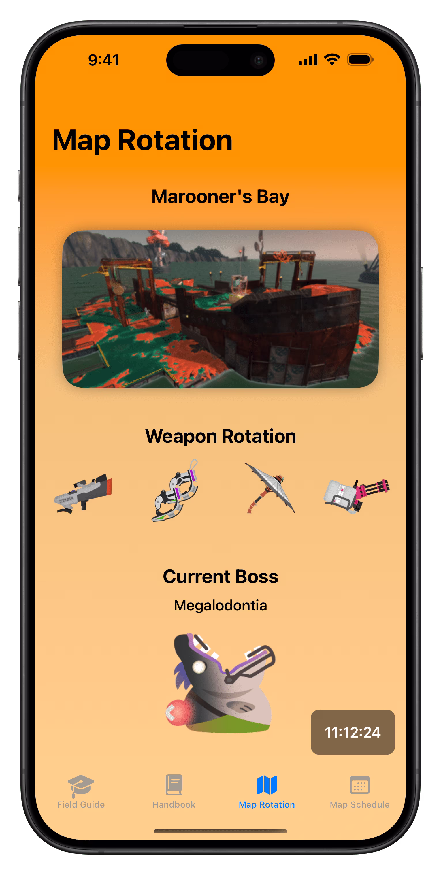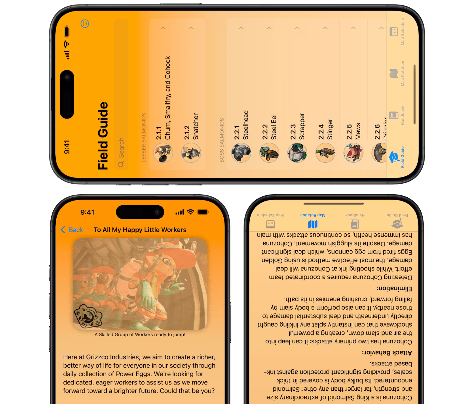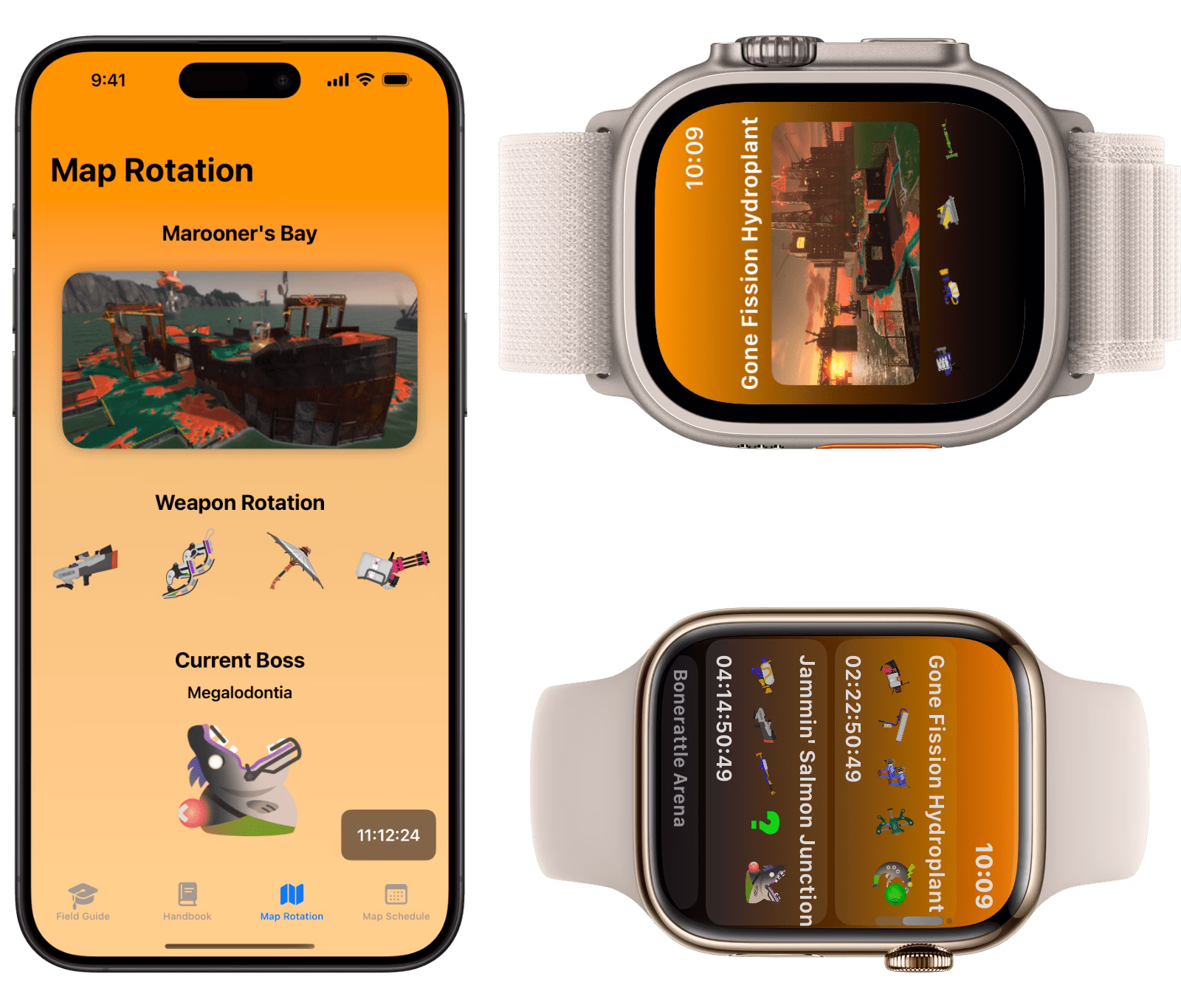Grizzco Handbook allows you to see the current Salmon Run rotation, as well as the upcoming rotations, allowing you to plan your Salmon Run sessions in advance.