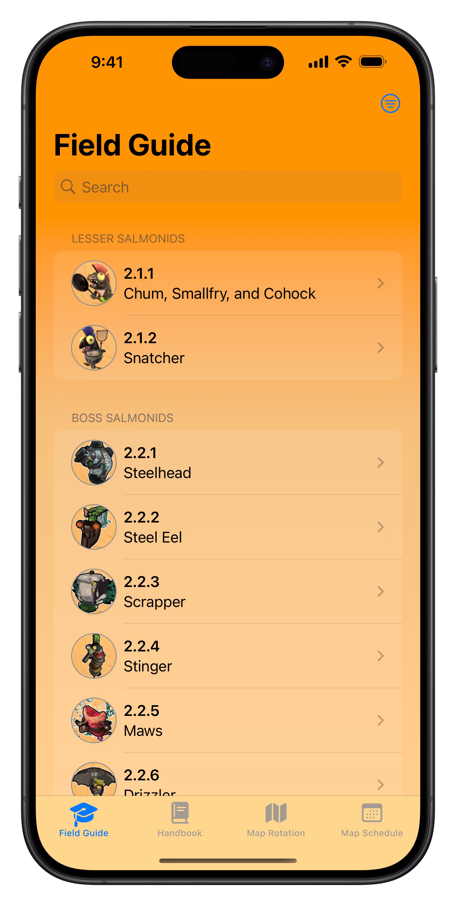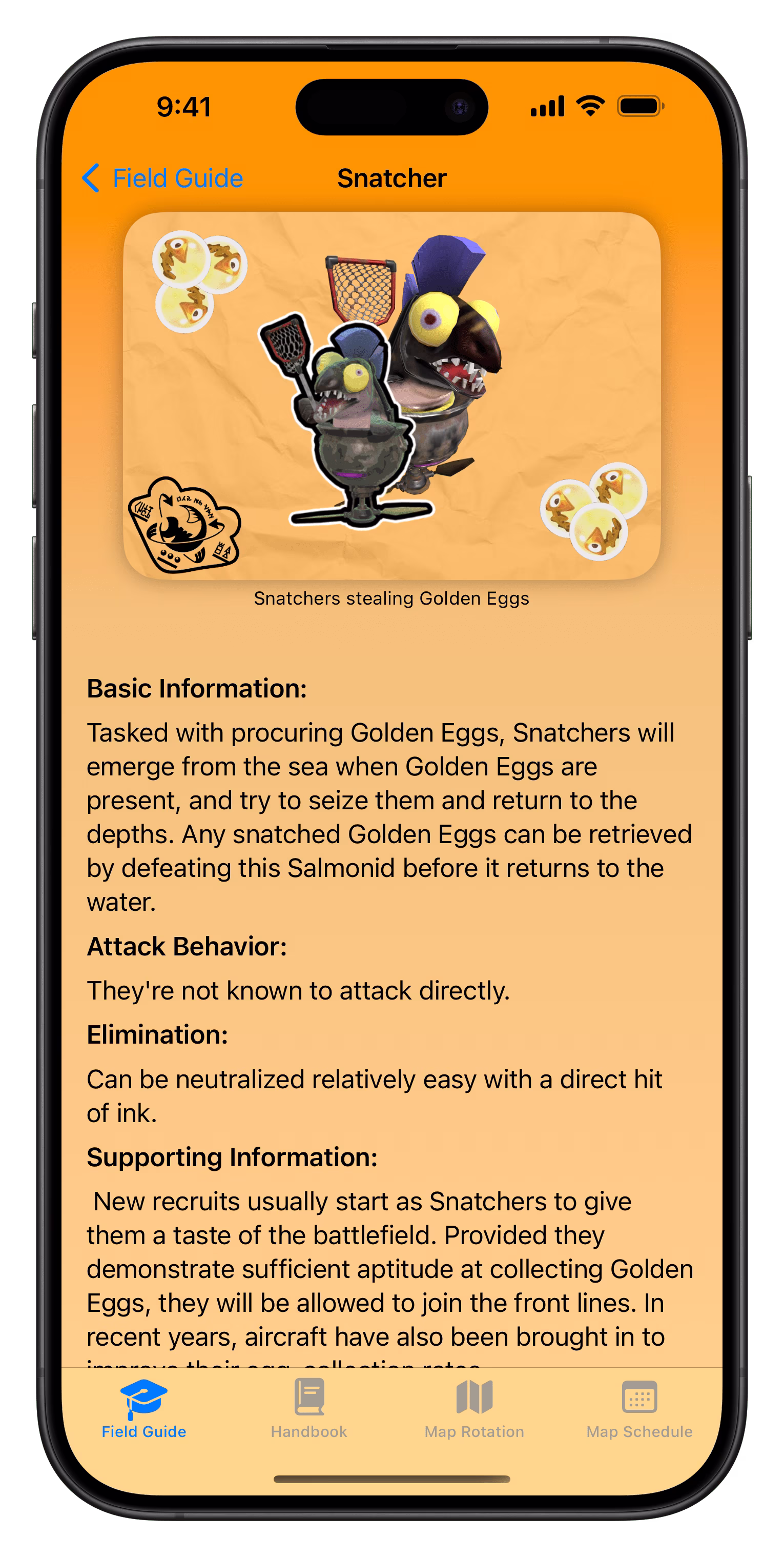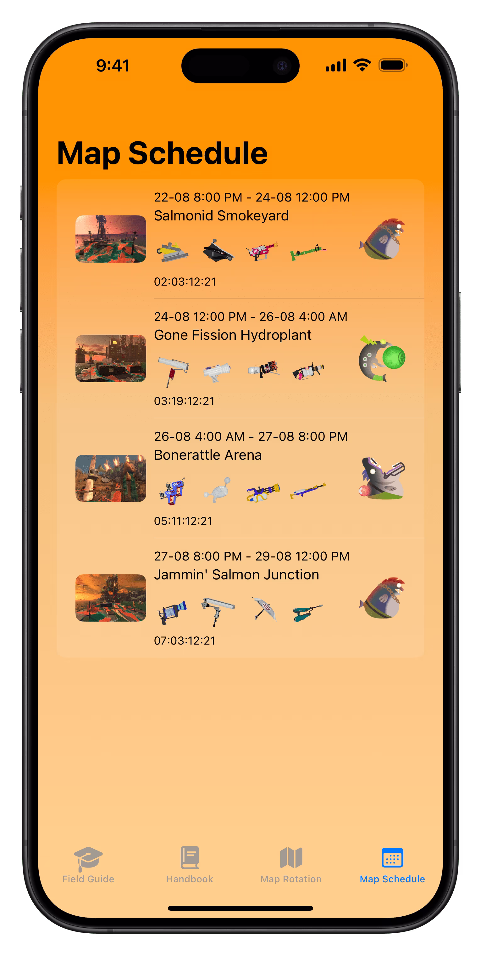 Grizzco Handbook allows you to see the current Salmon Run rotation, as well as the upcoming rotations, allowing you to plan your Salmon Run sessions in advance.